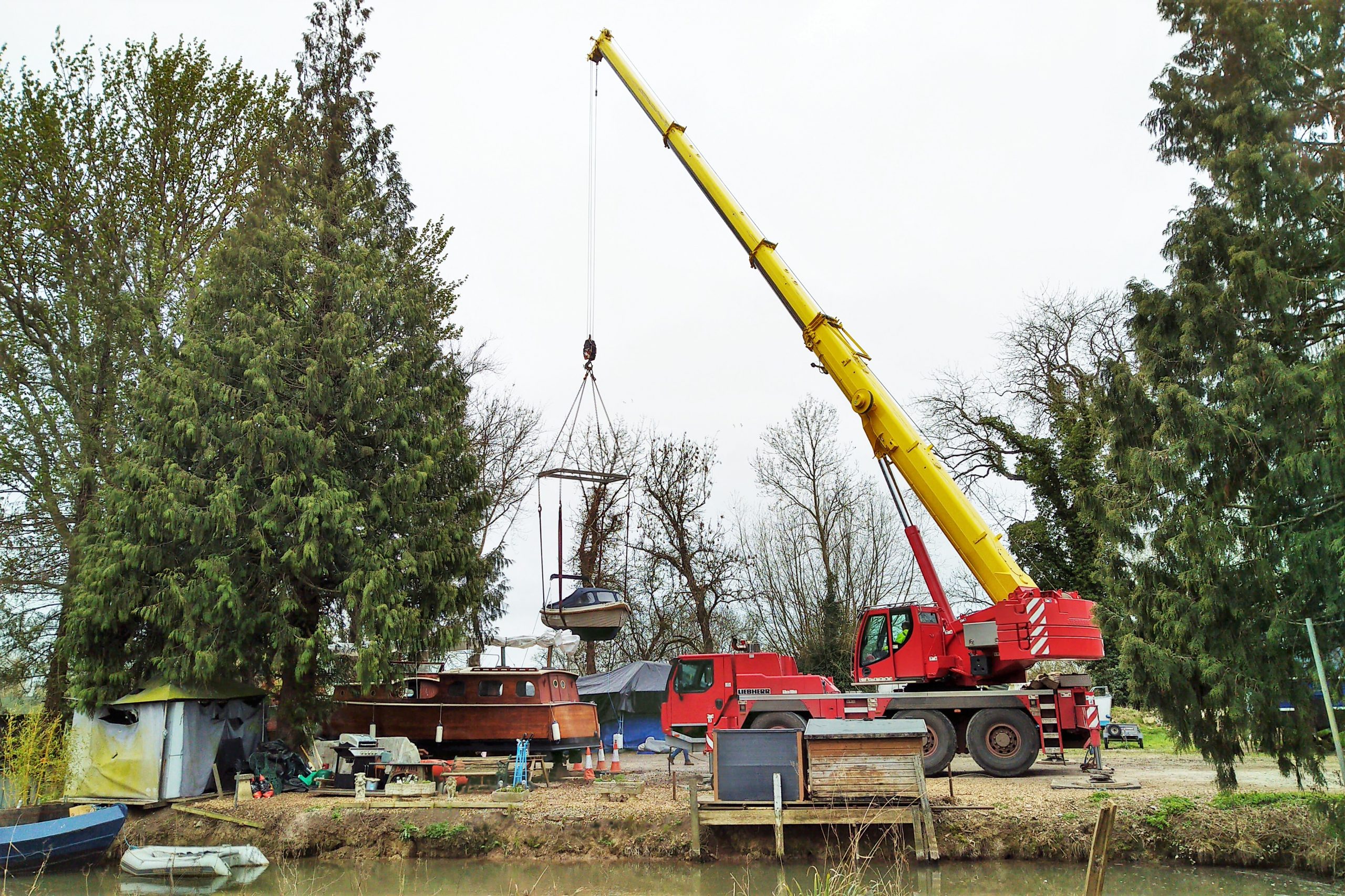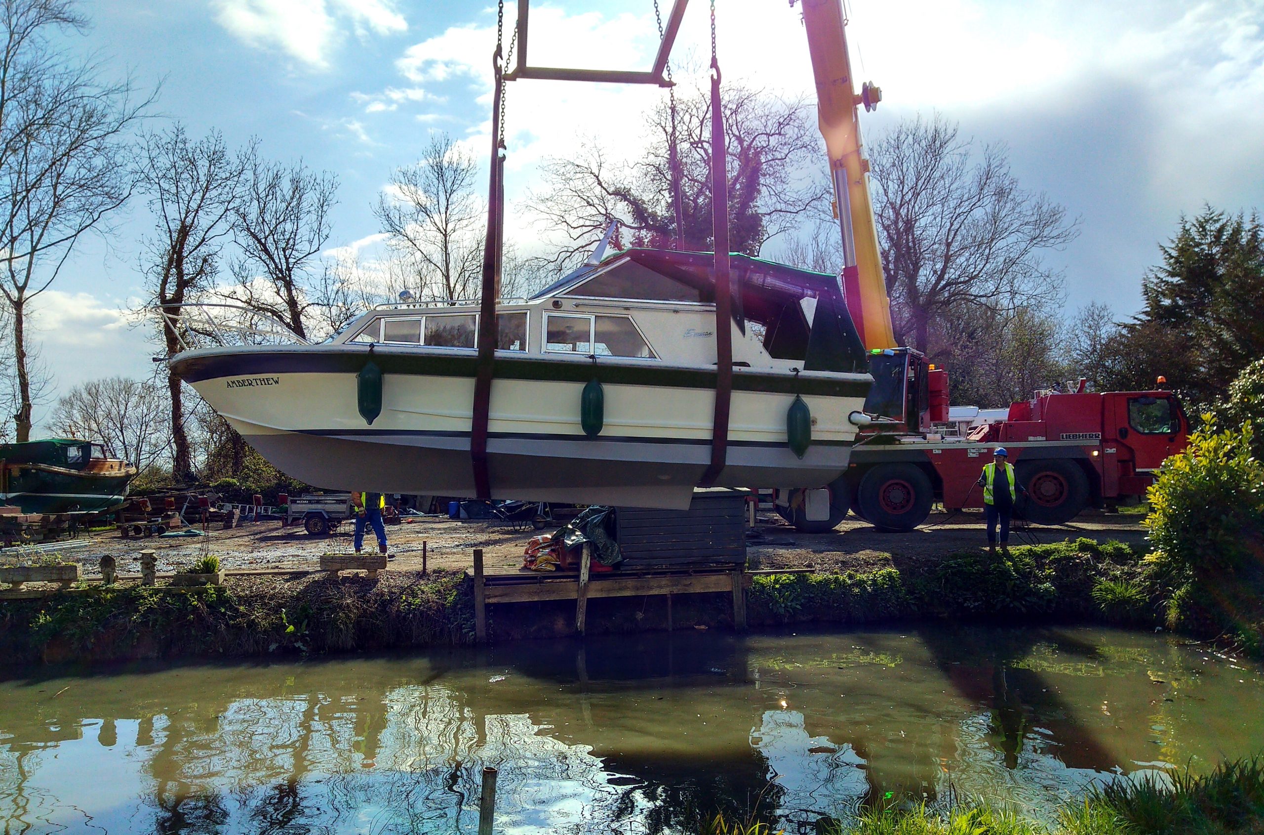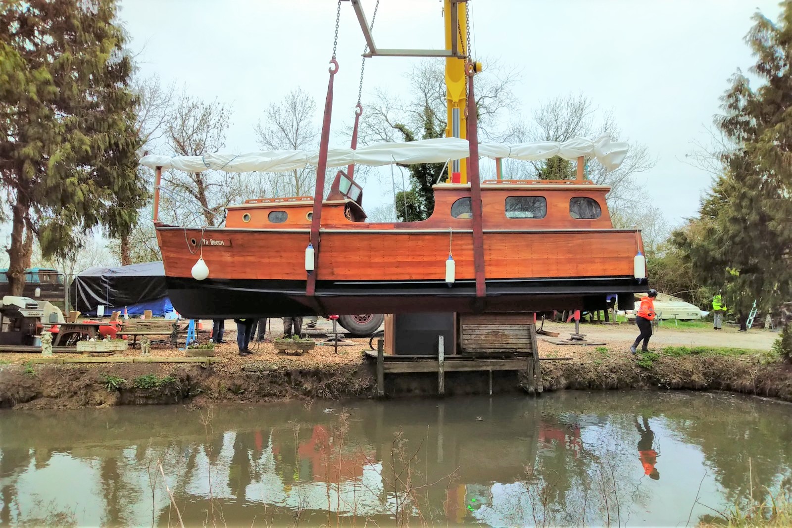 The craning operation took place on a bitterly cold but thankfully dry Saturday at the start of April, with the team from MJT Crane Hire Ltd once again on site. Barry Tuckey and his two ‘banks-women’ – his daughter, Lisa, and regular assistant, Sharon – arrived with their 60-tonne crane just before 9am and, with the help of some of the boat owners, all 10 cruisers were safely transferred to their berths in just two and a half hours.