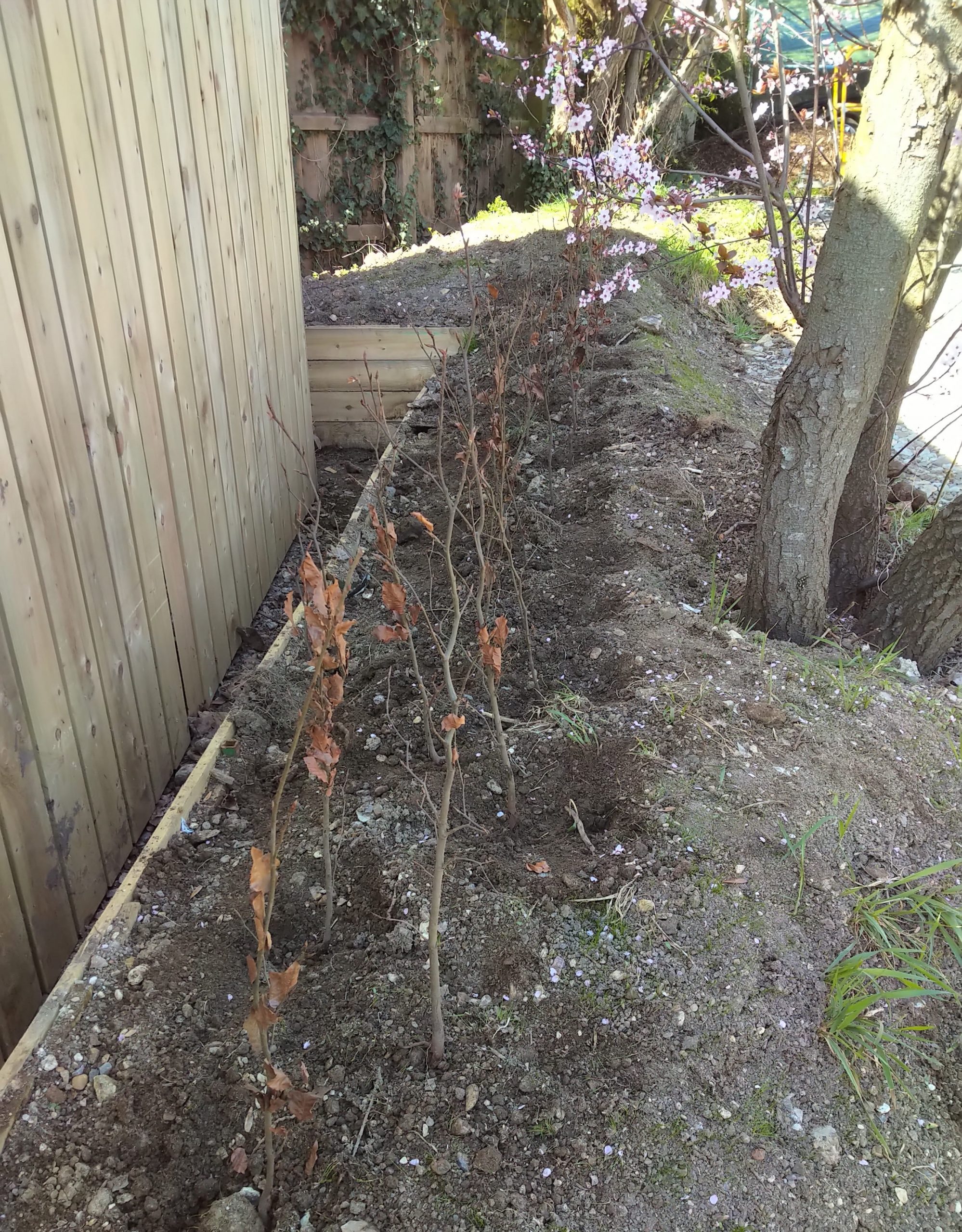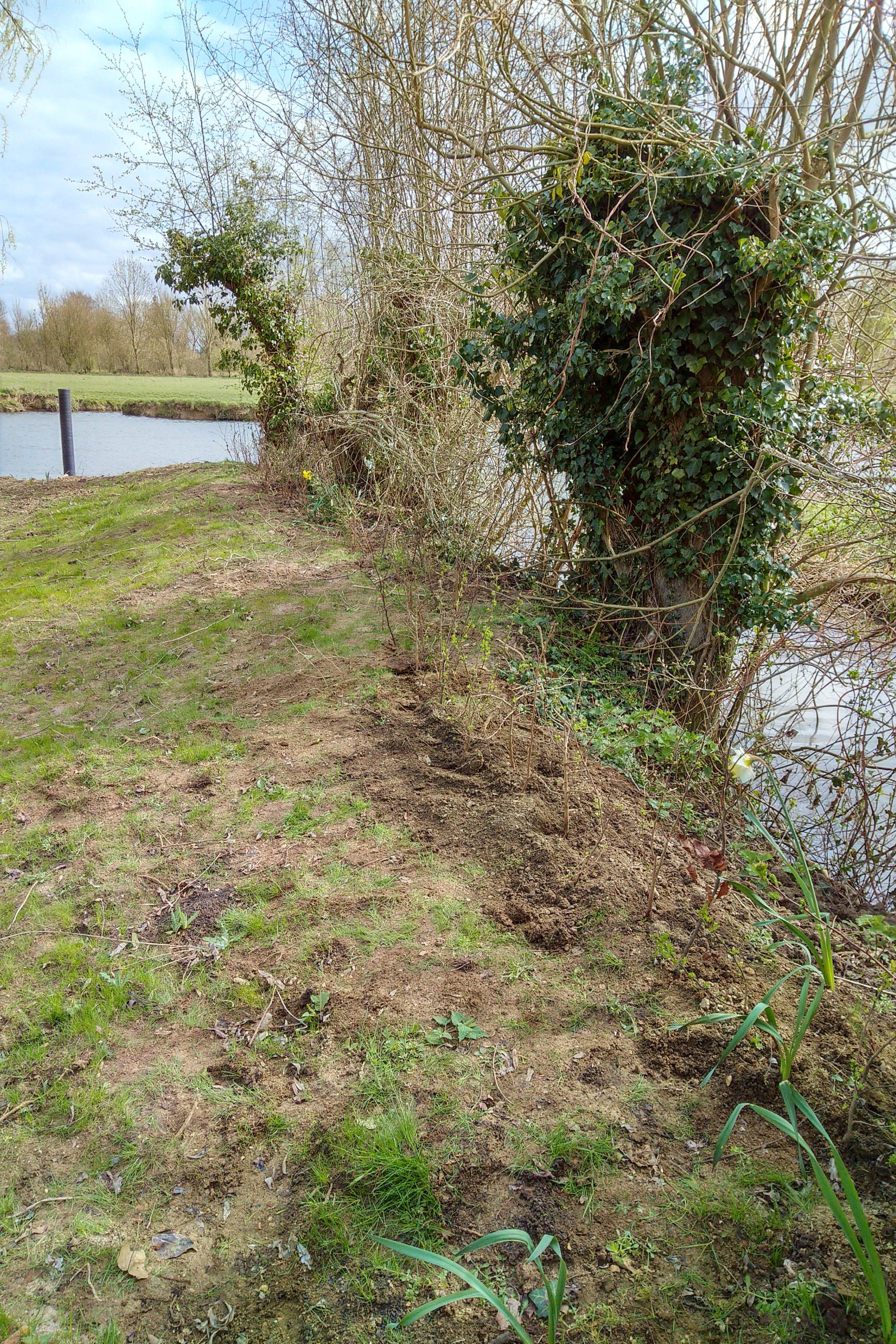 We’ve put in a 12m beech hedge along one edge of the car park and then along the western boundary, running from the river bank back into the marina, we’ve planted a 42m mix of shrubs – hawthorn, cherry plum, privet, hazel, pear and beech. Once they’ve matured, they should provide excellent privacy and protection, as well as nesting for birds, blossom for bees and plenty of foraging opportunities for smaller mammals.